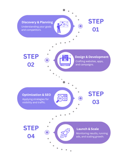 - On-page and off-page SEO strategies that deliver long-term growth.